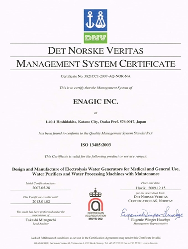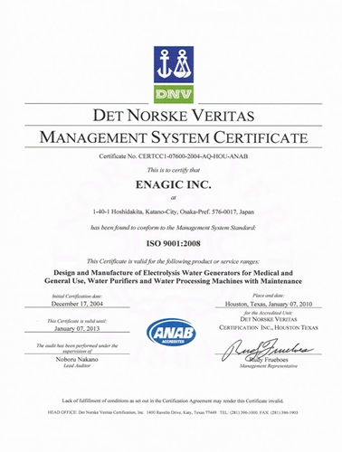 電解水是唯一一種水能夠得到此機構認證為擁有醫療保健功效的水。
